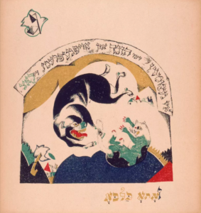 Les images de « Had Gadya » de Lissitzky ont été publiées sous forme de livre par le Yiddish Kultur-Lige, un projet visant à renforcer la culture juive en Ukraine. Ses créations colorées et géométriques incluent des images shtetl rappelant Marc Chagall, qui était son contemporain, ainsi que des textes yiddish. L'histoire de la chanson aussi » résonnait avec le sort – et les espoirs – des Juifs russes avant et après la Révolution russe, lorsque la défaite du tsarisme annonçait une nouvelle ère.