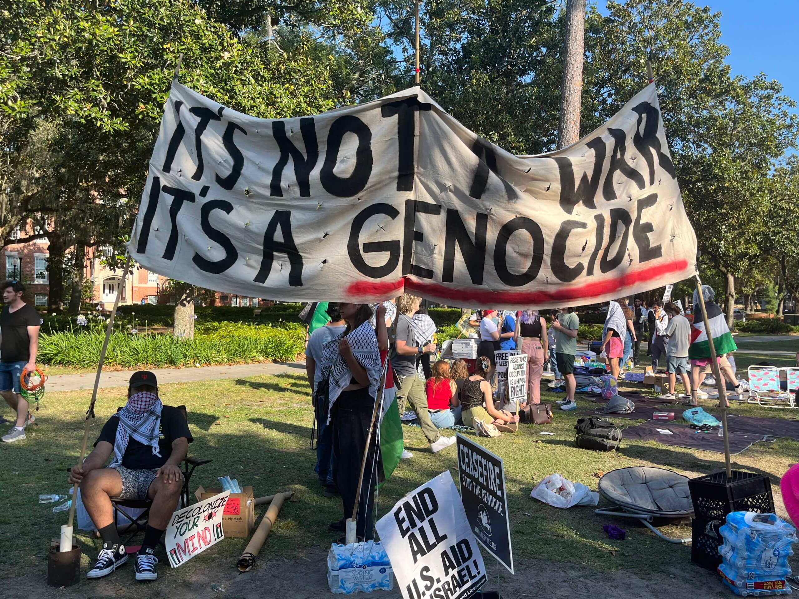 Les manifestants à l’UF et dans les universités de tout le pays appellent au désinvestissement d’Israël et à la fin de sa campagne militaire à Gaza. Mais de nombreux étudiants et professeurs juifs affirment que les revendications des manifestants se transforment trop souvent en appels à la destruction d'Israël et en incidents antisémites.