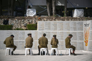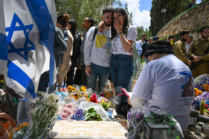 Les personnes en deuil commémorant le Jour du Souvenir d'Israël lundi se souviennent des soldats tués le 7 octobre. Les événements autour du Memorial Day et du Jour de l’Indépendance mardi ont été particulièrement modérés cette année. (Photo par Alexi J. Rosenfeld/Getty Images) Image de